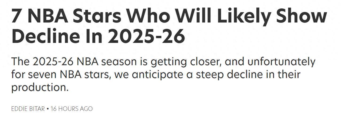 詹库两大超巨皆遭看衰!在休赛期深入各支球队备战新赛季之际,美媒《fadeawayworld》预测7大球星将在新赛季下滑,其中詹姆斯与库里高居前二。